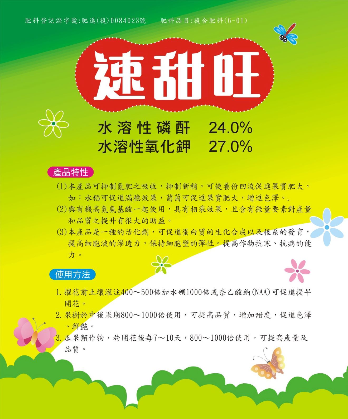 登記成分:水溶性磷酐24.0% 水溶性氧化鉀27.0%